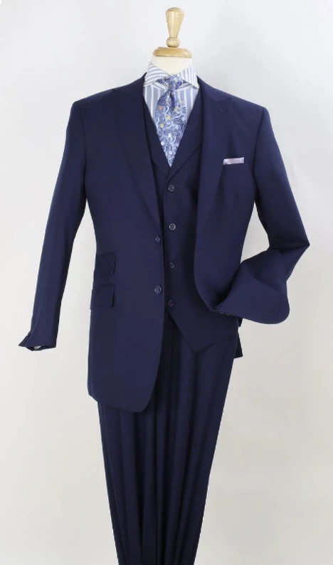 Apollo King Men’s 100% Wool 3pc Fashion Suit – Stylish Peak Lapel