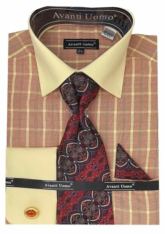 Avanti Uomo Men’s French Cuff Dress Shirt Set – Plaid Windowpane