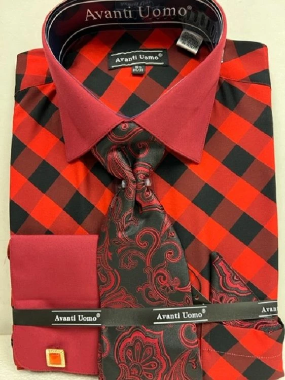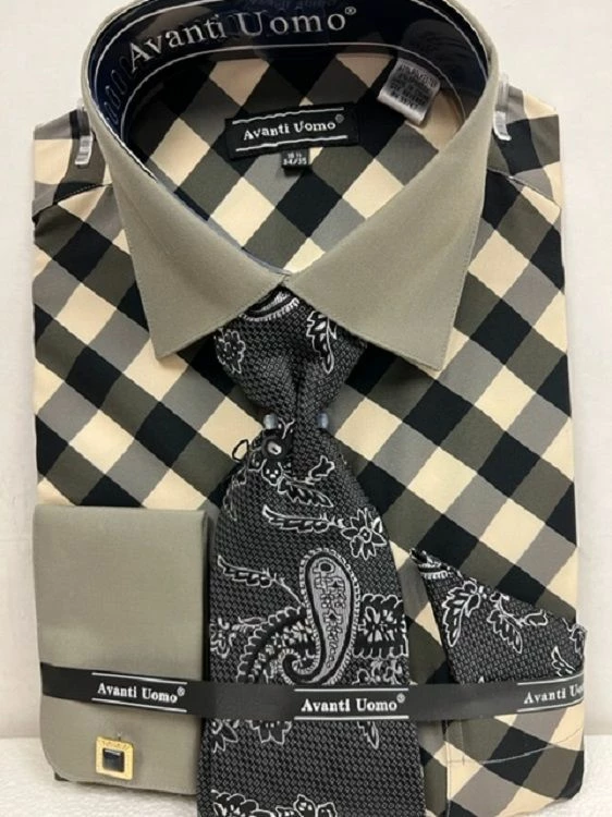 Avanti Uomo Men’s French Cuff Dress Shirt Set – Smooth Triple Tone