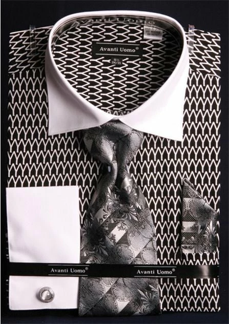 Be the first to review “Avanti Uomo Men’s French Cuff Dress Shirt Set – Two Tone Print” Cancel reply