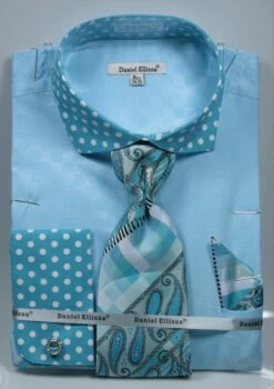 Daniel Ellissa Men’s French Cuff Dress Shirt Set – Polka Dot