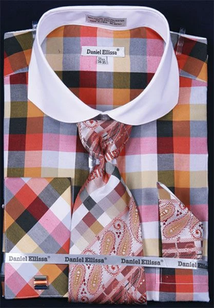 Be the first to review “Daniel Ellissa Men’s French Cuff Dress Shirt Set – Bright Checker” Cancel reply