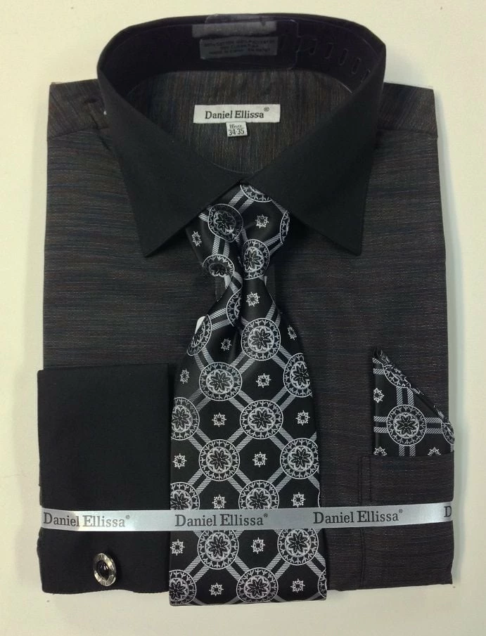 Be the first to review “Daniel Ellissa Men’s French Cuff Dress Shirt Set – Textured Solid” Cancel reply