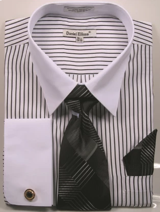 Daniel Ellissa Men’s Outlet French Cuff Shirt Set – Bold Stripes