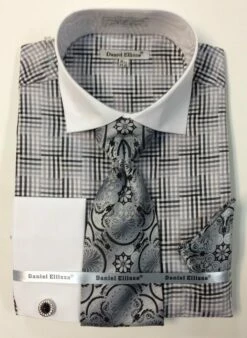 Daniel Ellissa Men’s French Cuff Dress Shirt Set – Geometric Plaid