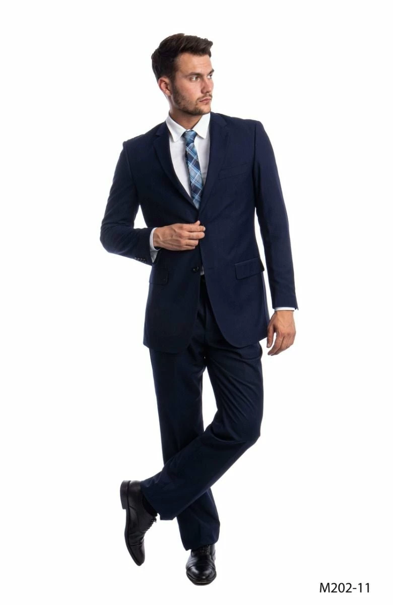 Demantie Men’s 2 Piece Solid Executive Suit – Flat Front Pants.