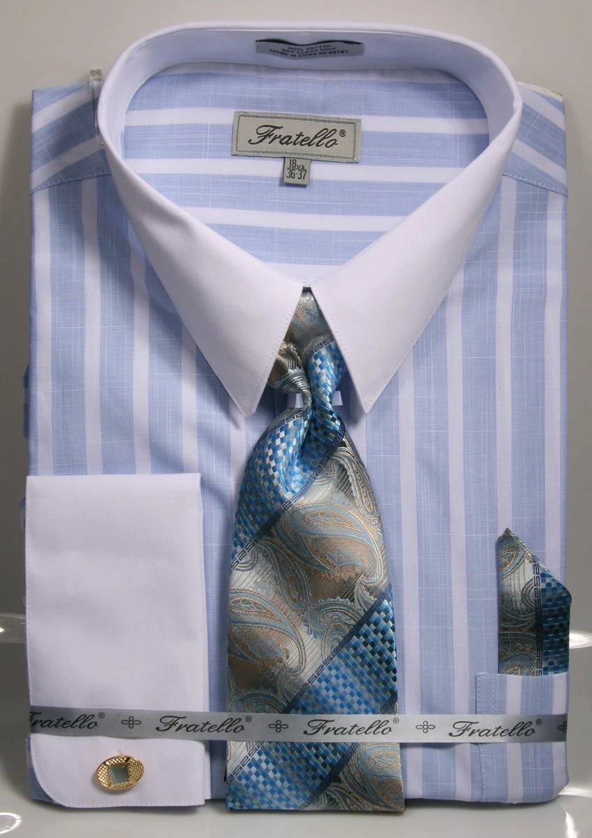 Fratello Men’s Outlet French Cuff Dress Shirt Set – White Accents