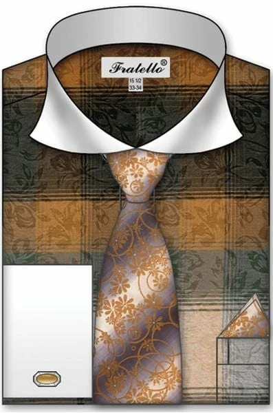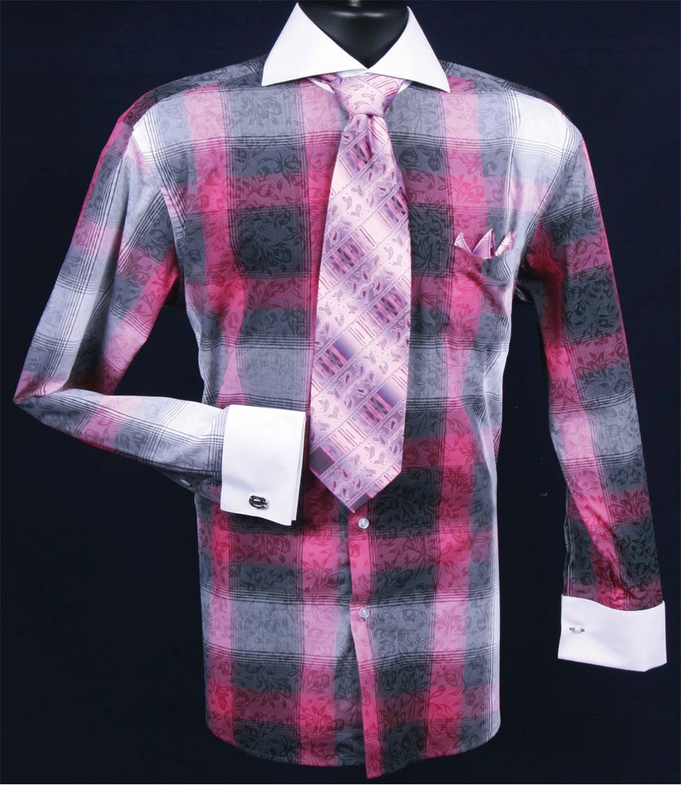 Fratello Men’s French Cuff Dress Shirt Set – Vibrant Checker