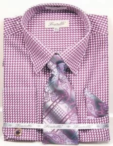 Fratello Men’s French Cuff Dress Shirt Set – Houndstooth Patch