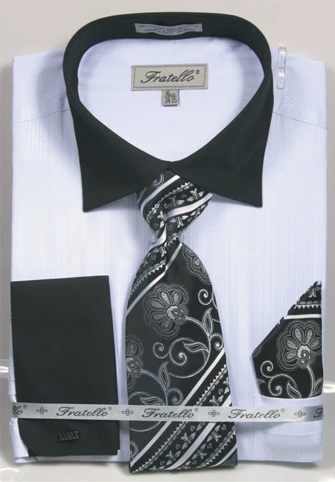 Fratello Men’s Outlet French Cuff Dress Shirt Set – White Accents