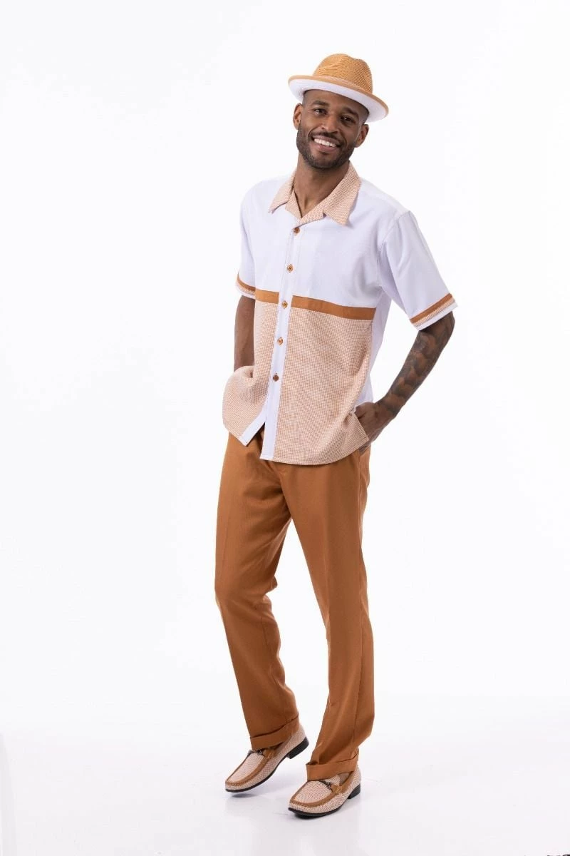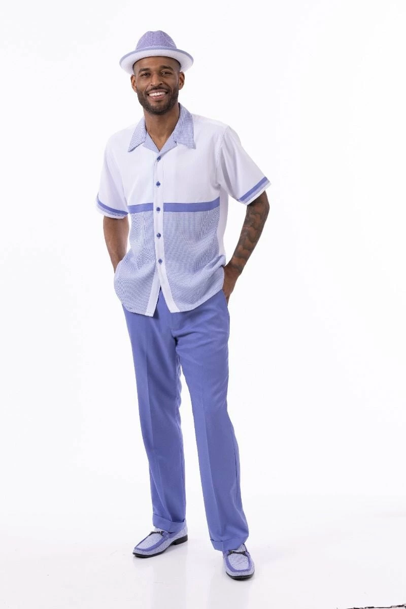 Montique Men’s 2 Piece Short Sleeve Walking Suit – Light Houndstooth