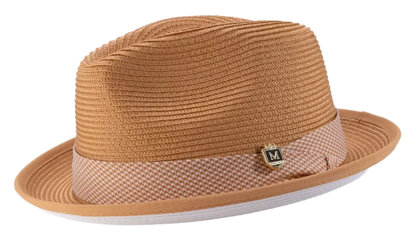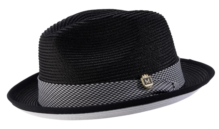 Montique Men’s Fedora Style Straw Hat – Light Houndstooth