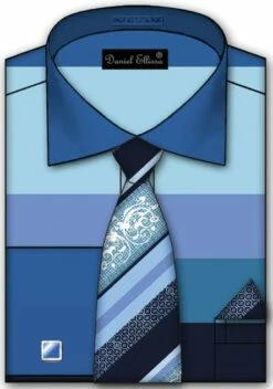 Avanti Uomo Men’s French Cuff Dress Shirt Set – Gradient Stripes