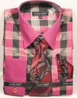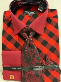 Avanti Uomo Men’s French Cuff Dress Shirt Set – Multi Color Checkered