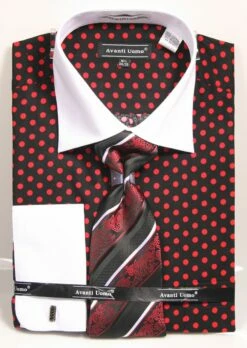 Avanti Uomo Men’s 100% Cotton French Cuff Shirt Set – Polka Dots