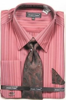 Avanti Uomo Men’s French Cuff Dress Shirt Set – Broken Stripe