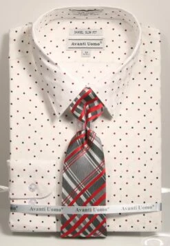 Avanti Uomo Men’s 100% Cotton Slim Fit Dress Shirt Set – Dot Pattern