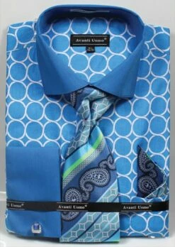 Avanti Uomo Men’s French Cuff Dress Shirt Set – Printed Pattern