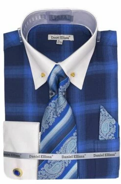 Daniel Ellissa Men’s French Cuff Shirt Set – Gradient Windowpane