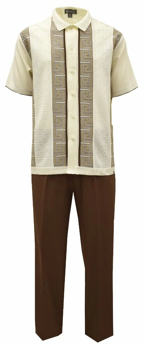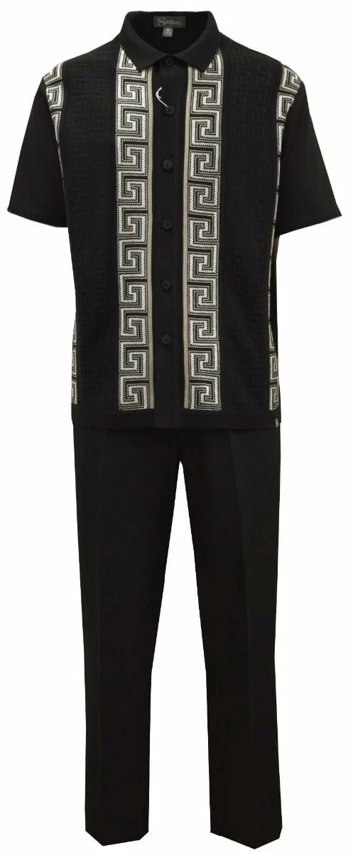 Silversilk Men’s 2 Piece Short Sleeve Walking Suit – Square Spirals