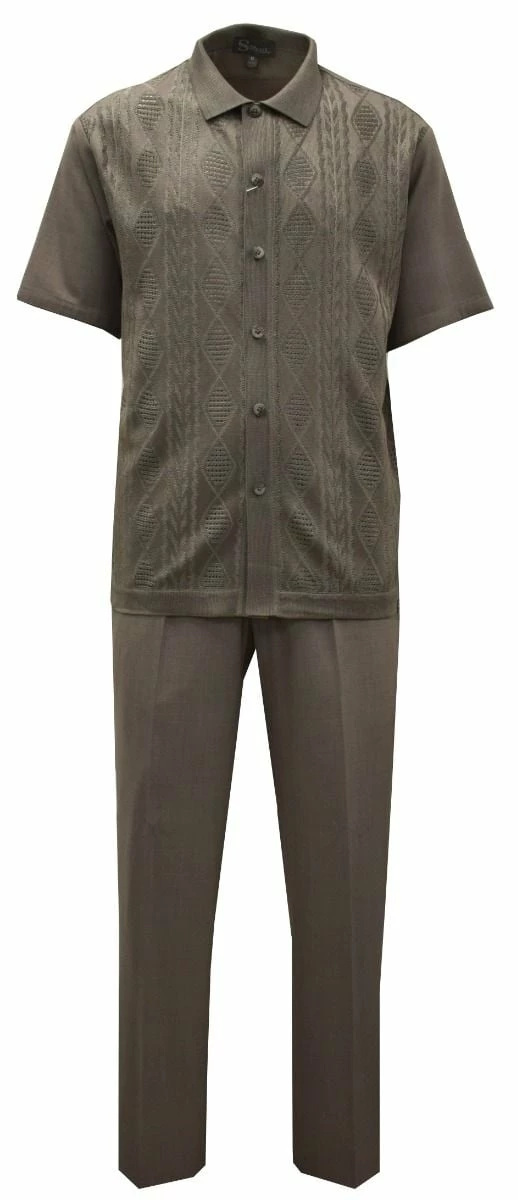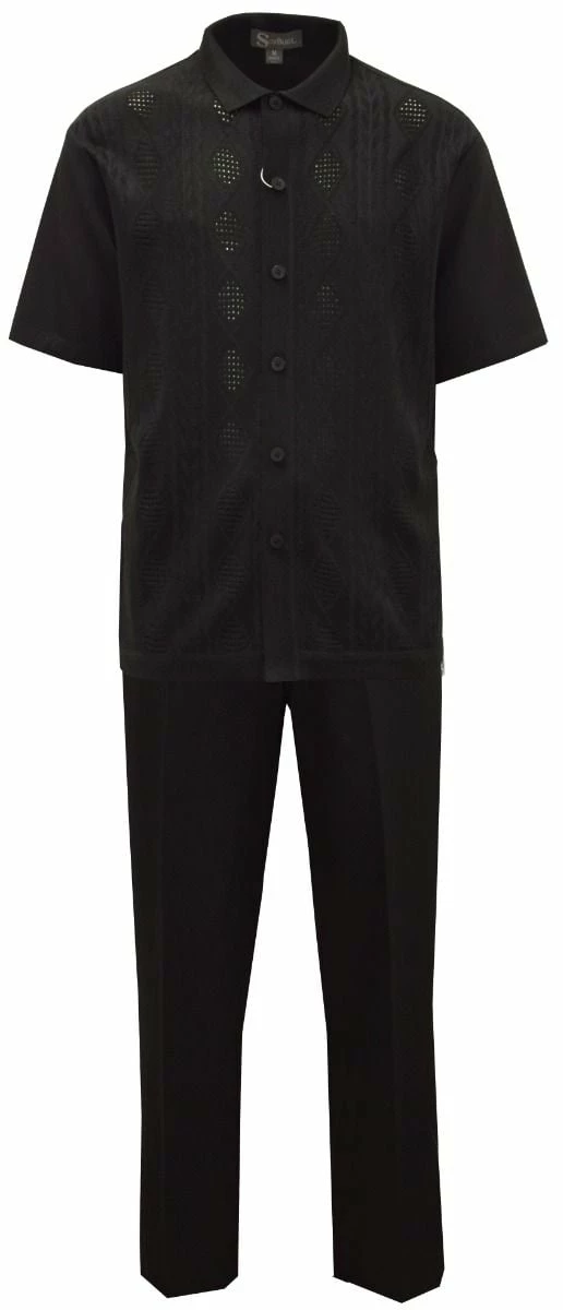Silversilk Men’s 2 Piece Short Sleeve Walking Suit – Textured Diamonds