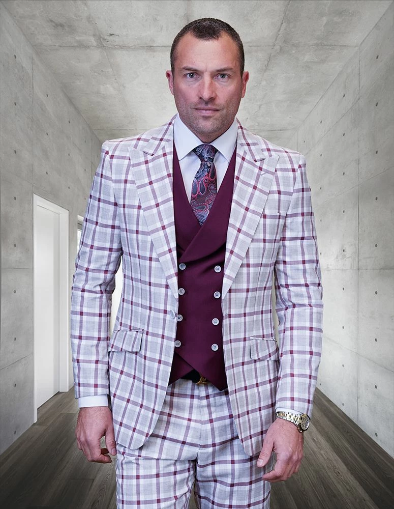 Statement Men’s 100% Wool 3 Piece Suit -Vibrant Windowpane