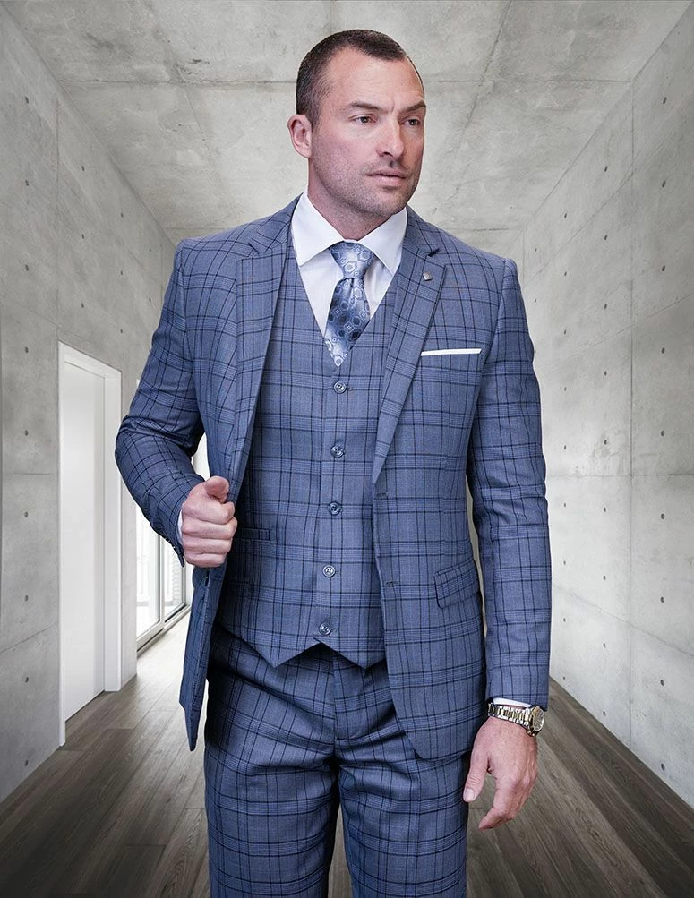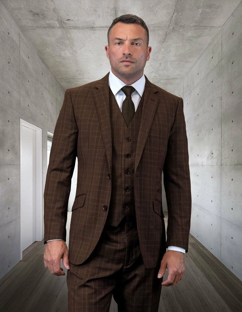 Statement Men’s 100% Wool 3 Piece Suit – Fashion Plaid
