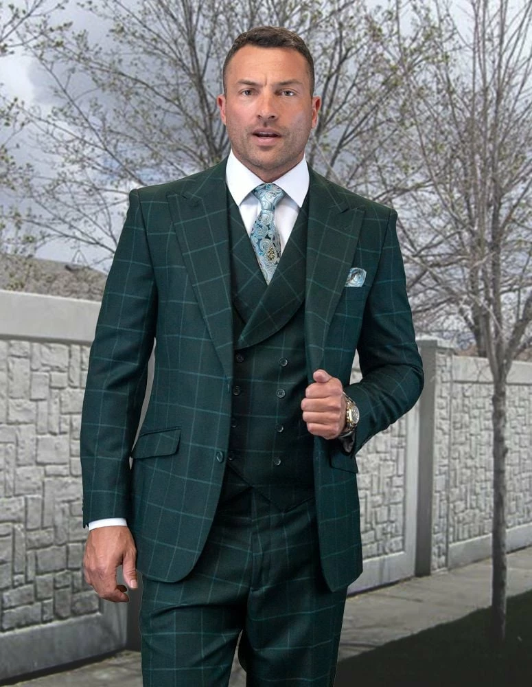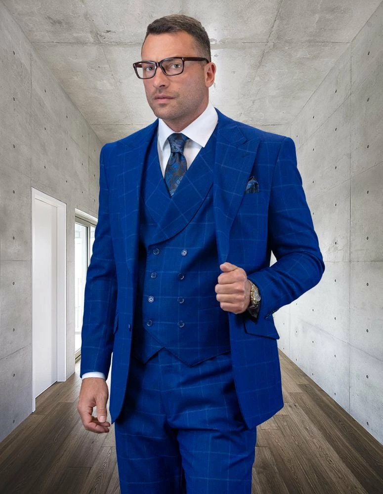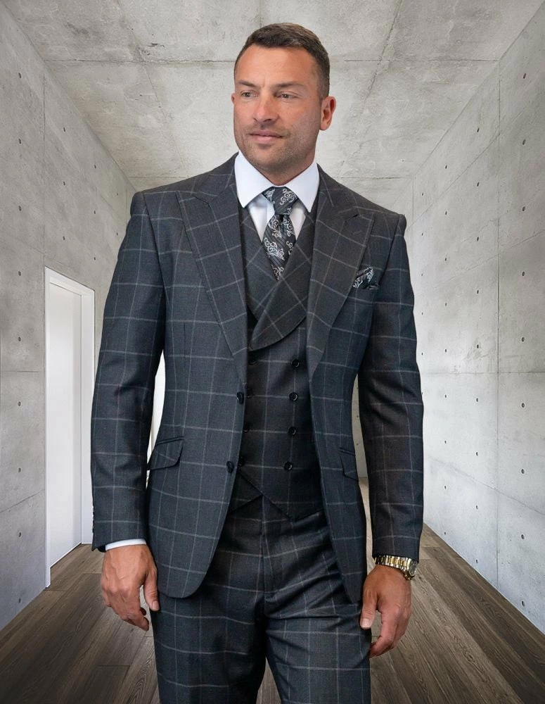 Statement Men’s 100% Wool 3 Piece Suit – Tone on Tone Windowpane