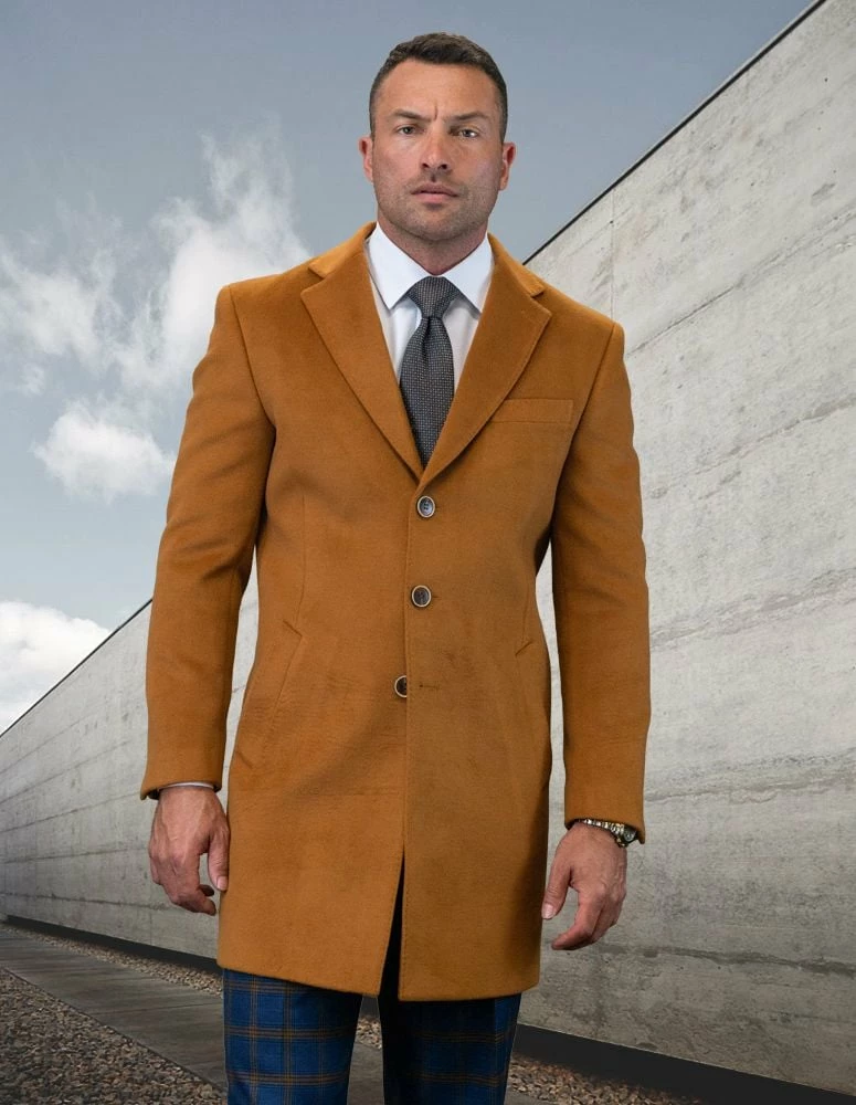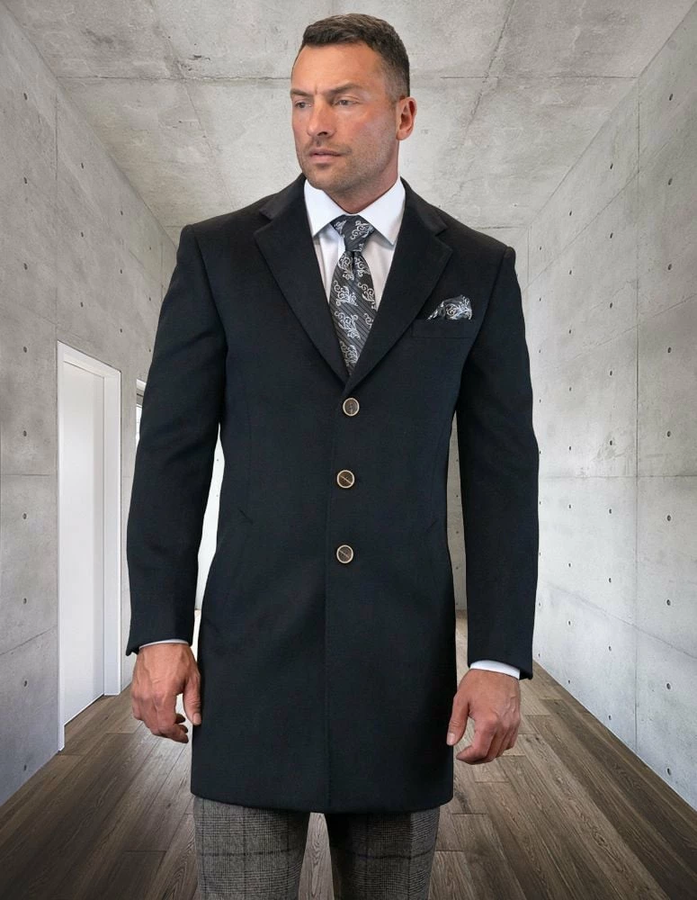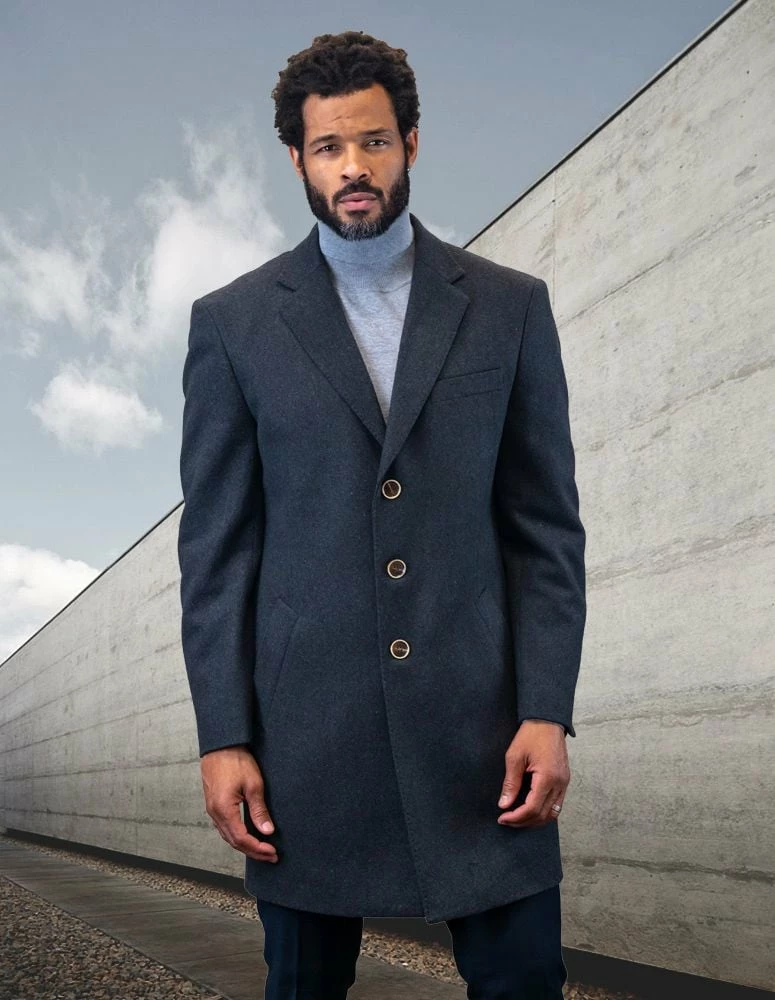 Statement Men’s Full Length 100% Wool Top Coat – Single Breasted