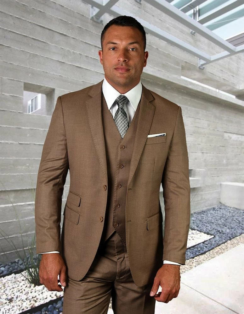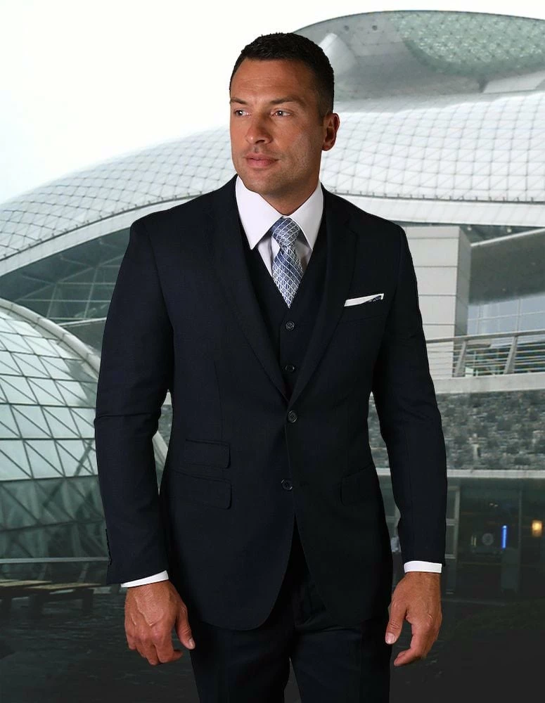 Statement Men’s 3 Piece 100% Wool Suit – Solid ColorÂ