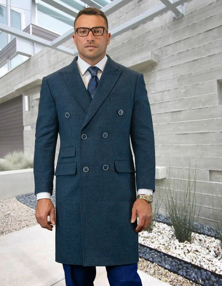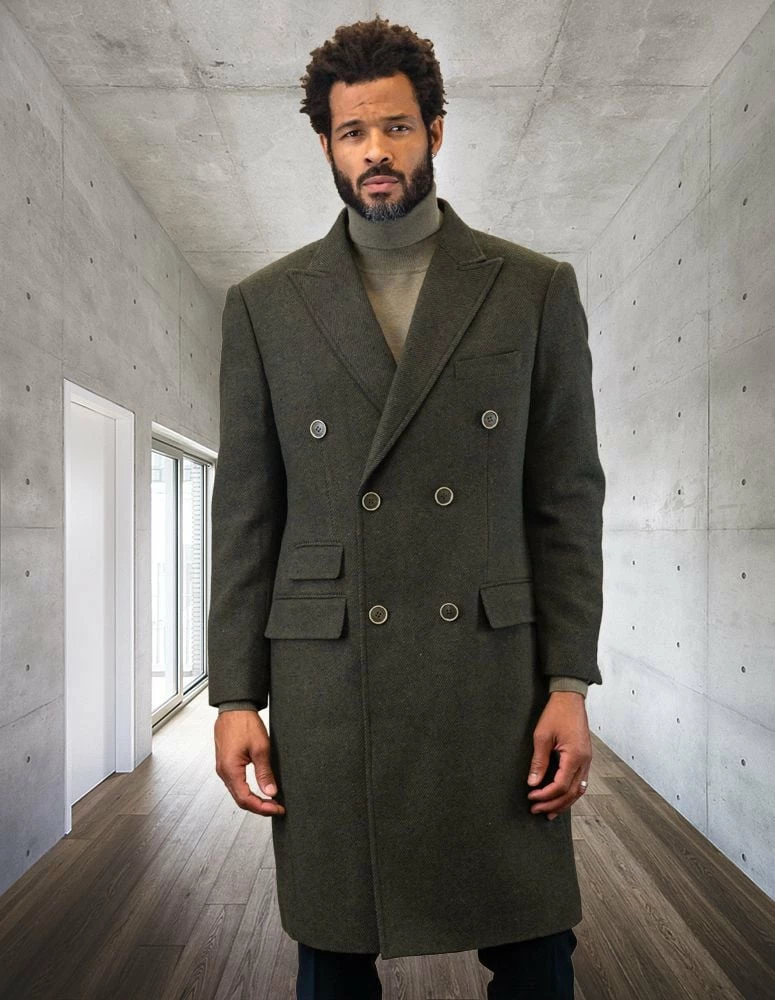 Statement Men’s Full Length 100% Wool Top Coat – Double Breasted