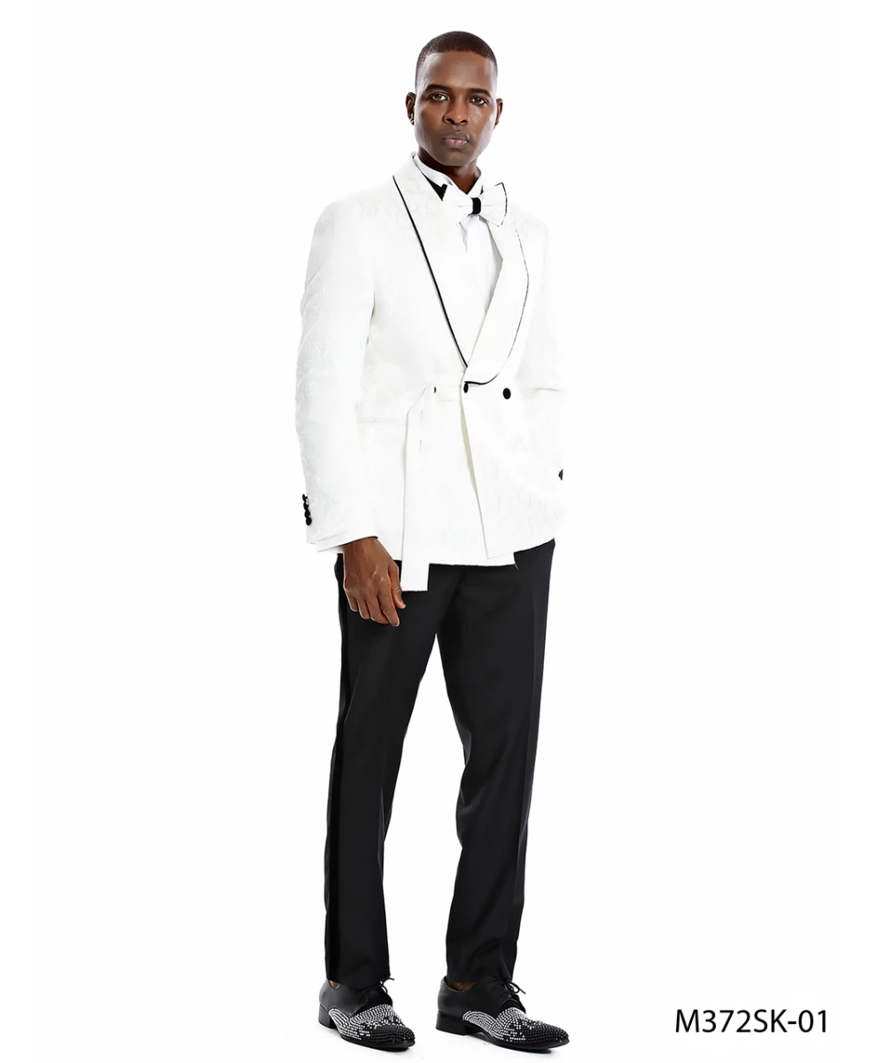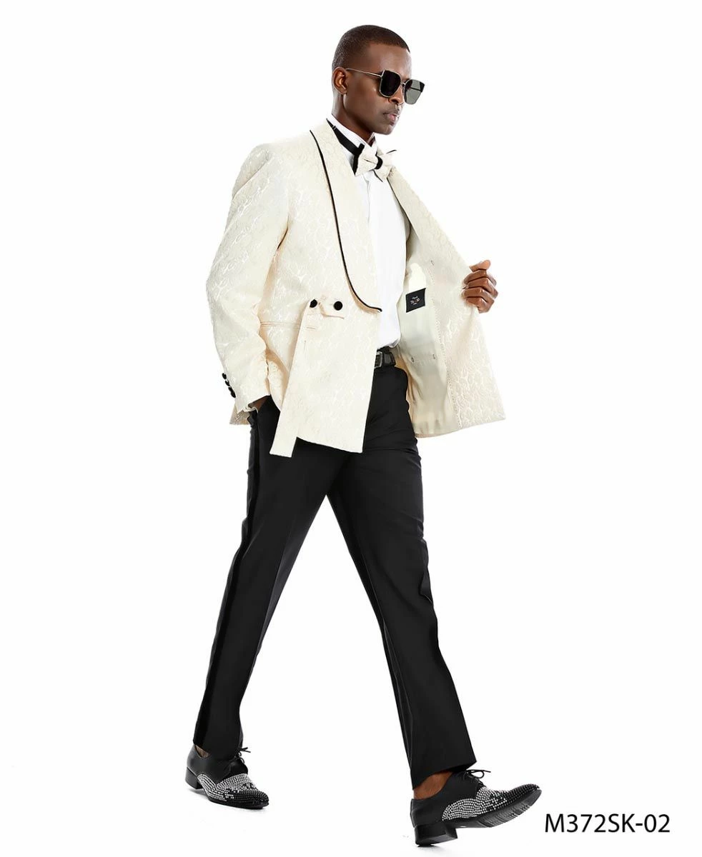 Tazio Men’s 3 Piece Skinny Fit Suit – Dark Trim Paisley