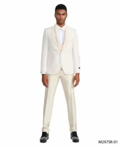 Tazio Men’s 3 Piece Skinny Fit Suit – Black Shawl Lapel