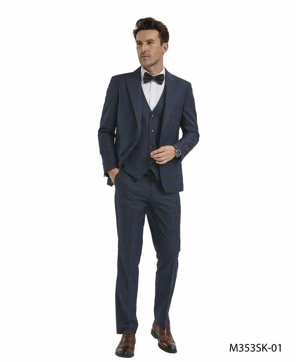 Tazio Men’s 3 Piece Skinny Fit Suit – Bold Plaid