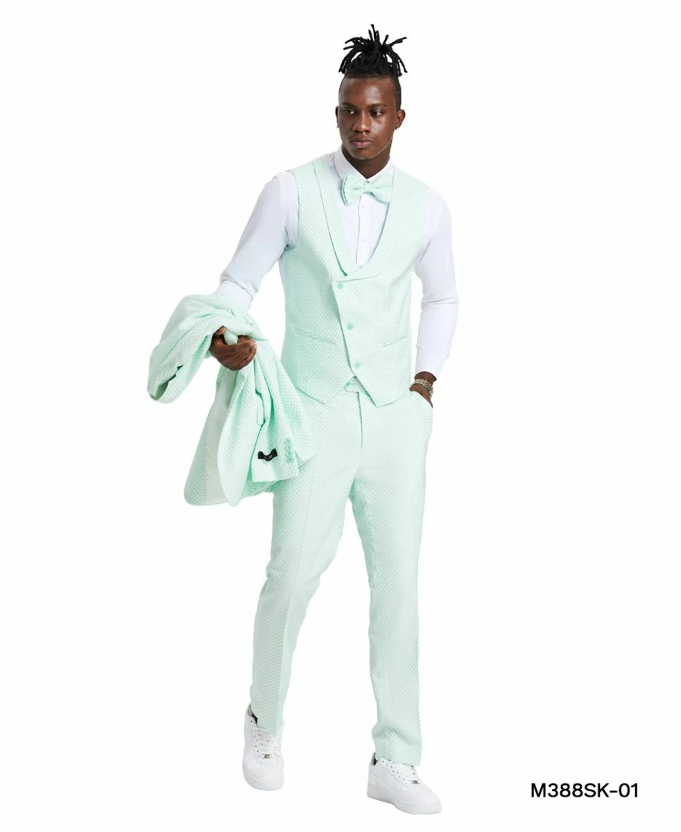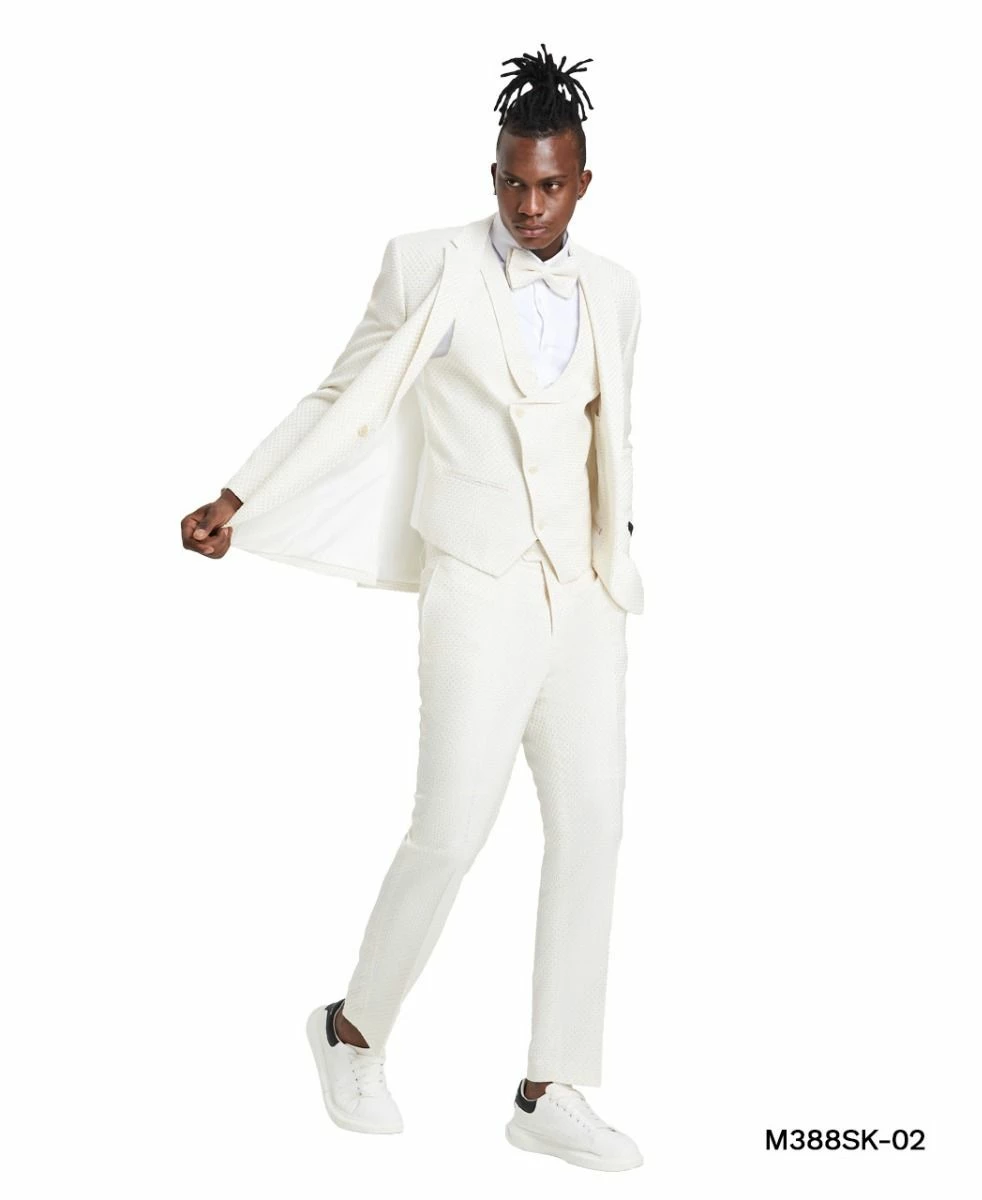 Tazio Men’s 3 Piece Skinny Fit Suit – Polka Dot