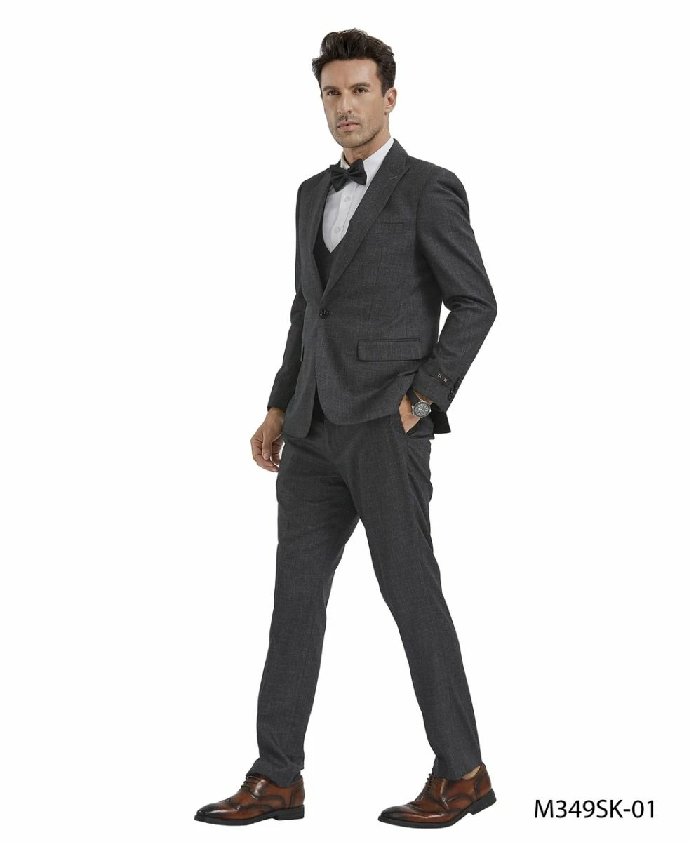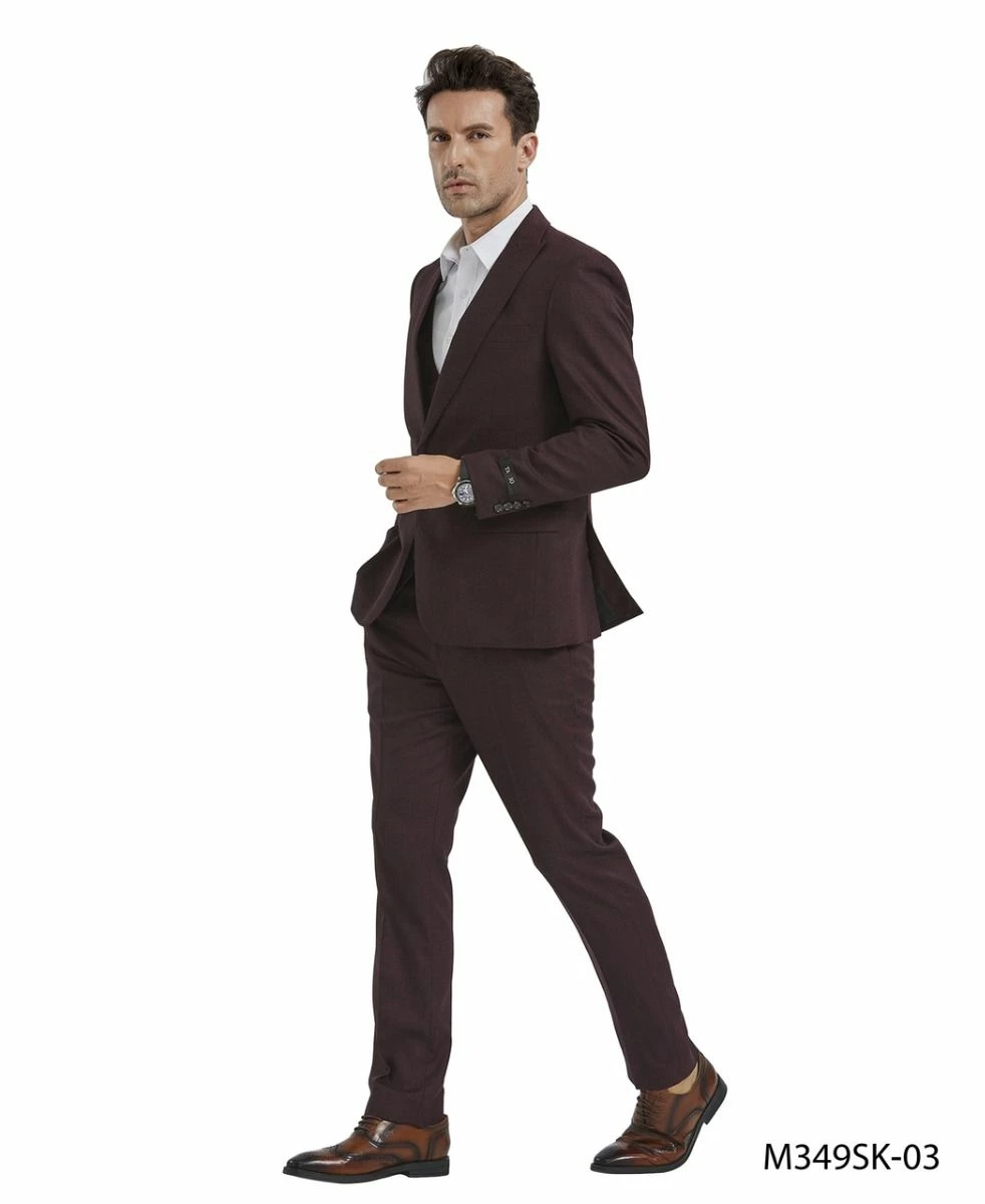 Tazio Men’s 3 Piece Skinny Fit Suit – Textured Solid