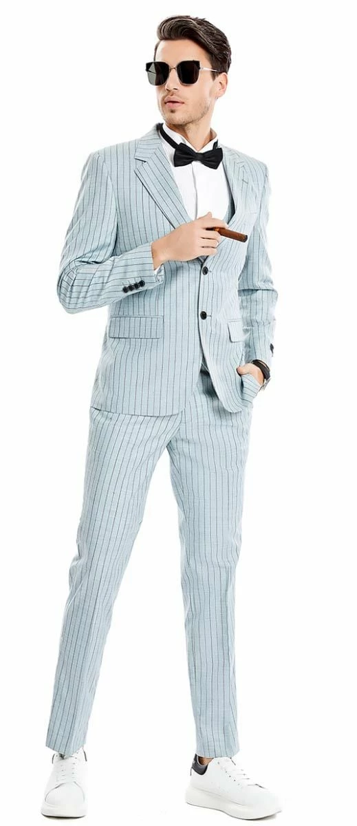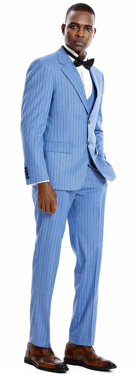 Tazio Men’s 3 Piece Skinny Fit Suit – Tone on Tone Pinstripe