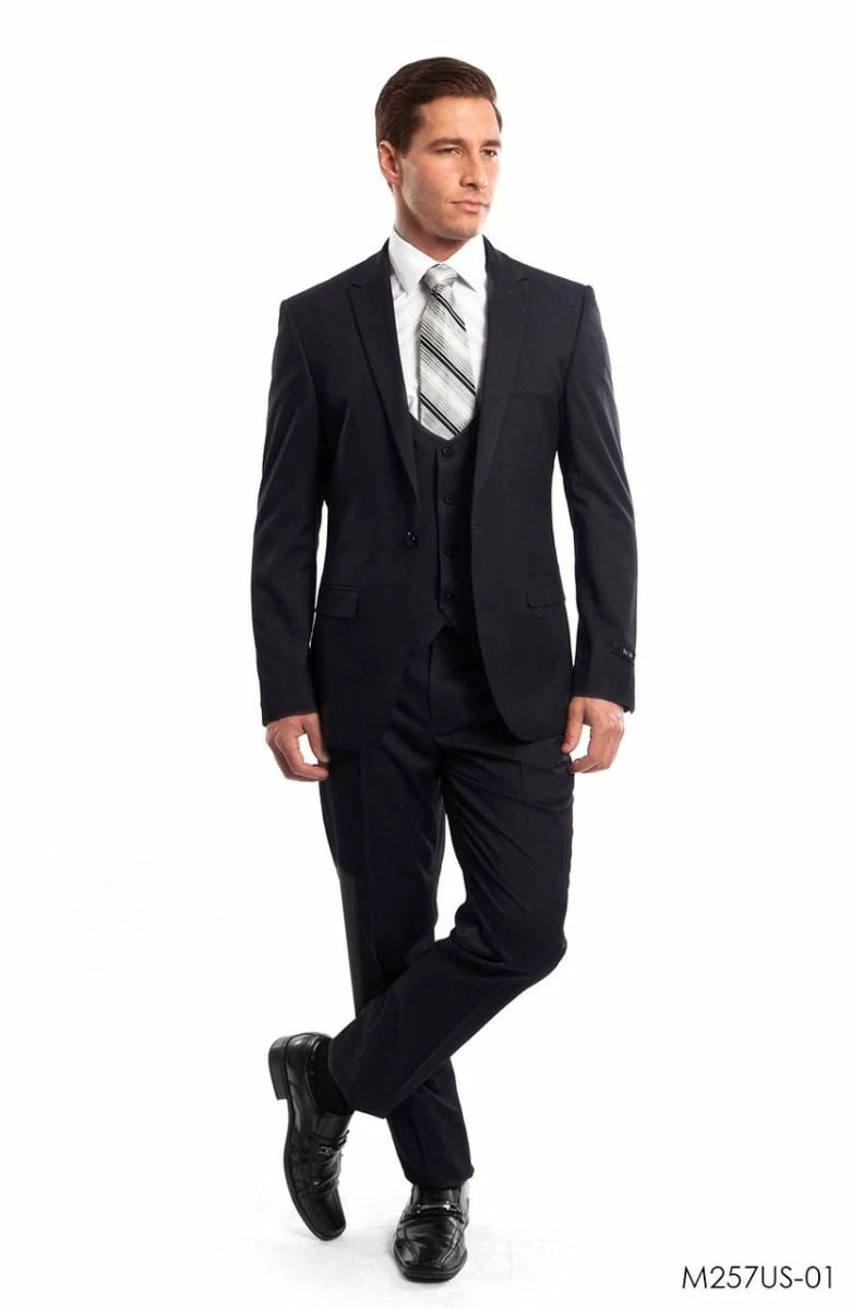 Tazio Men’s 3 Piece Ultra Slim Fit Executive Suit – Dark Colors