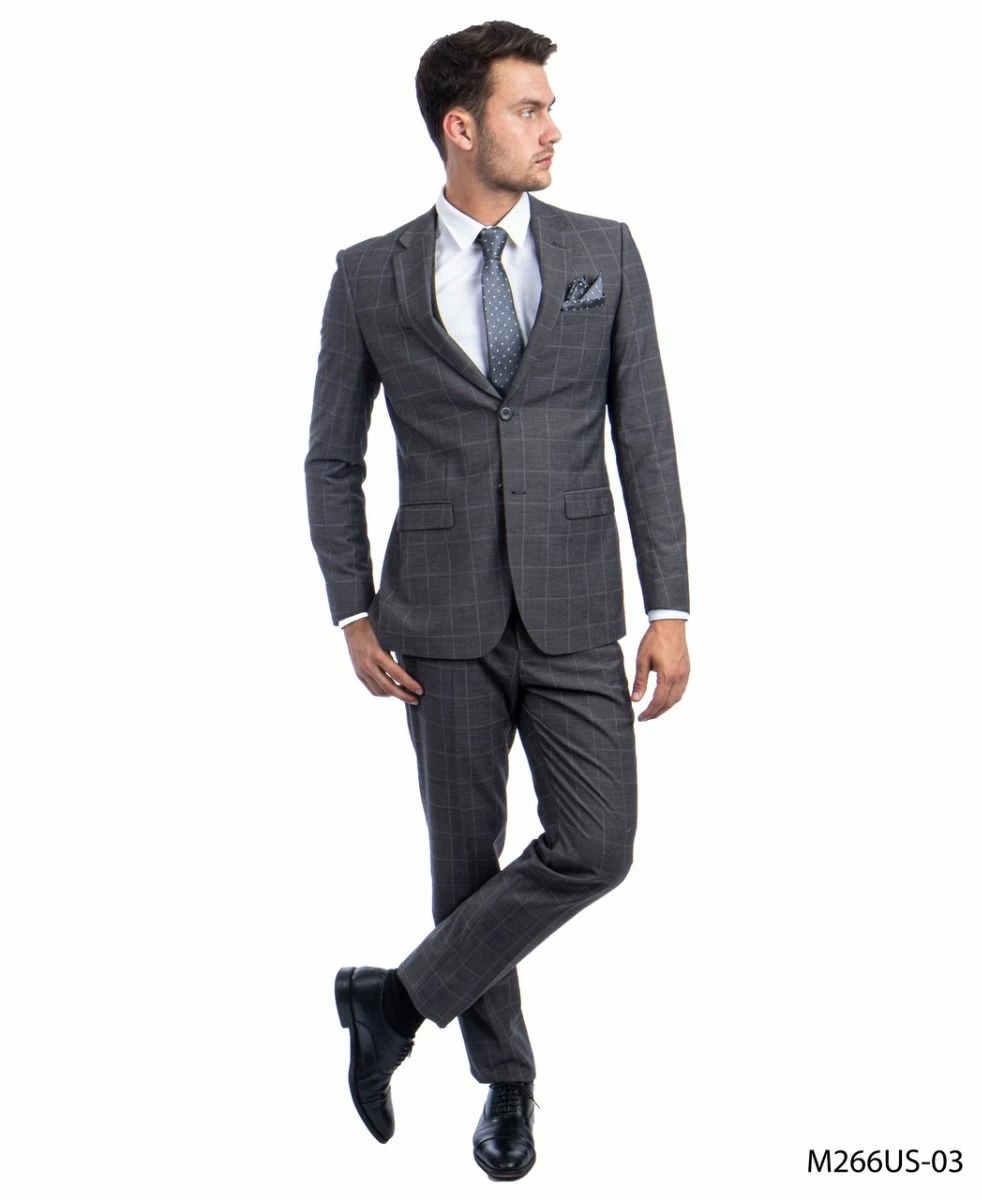 Tazio Men’s 3 Piece Ultra Slim Fit Executive Suit – Windowpane