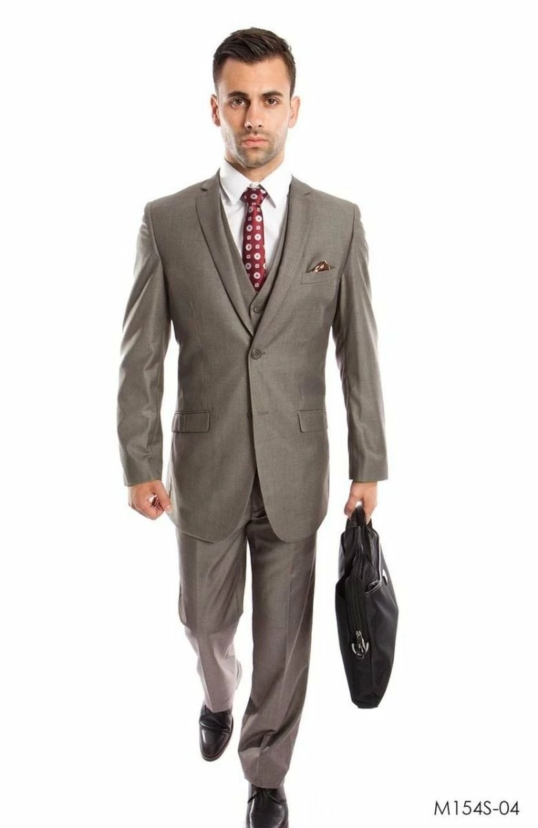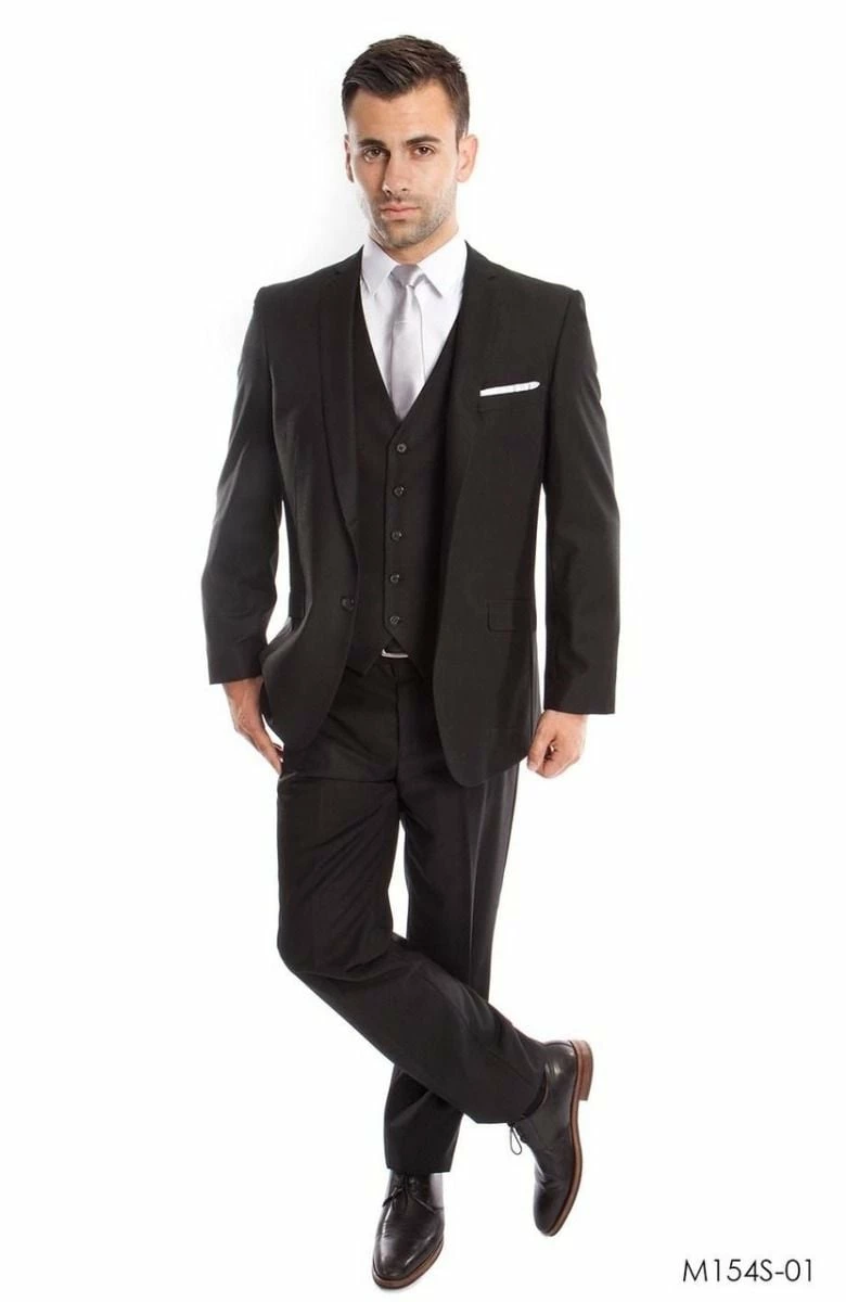 Tazio Men’s 3 Piece Executive Slim Fit Suit – 5 Button Vest.