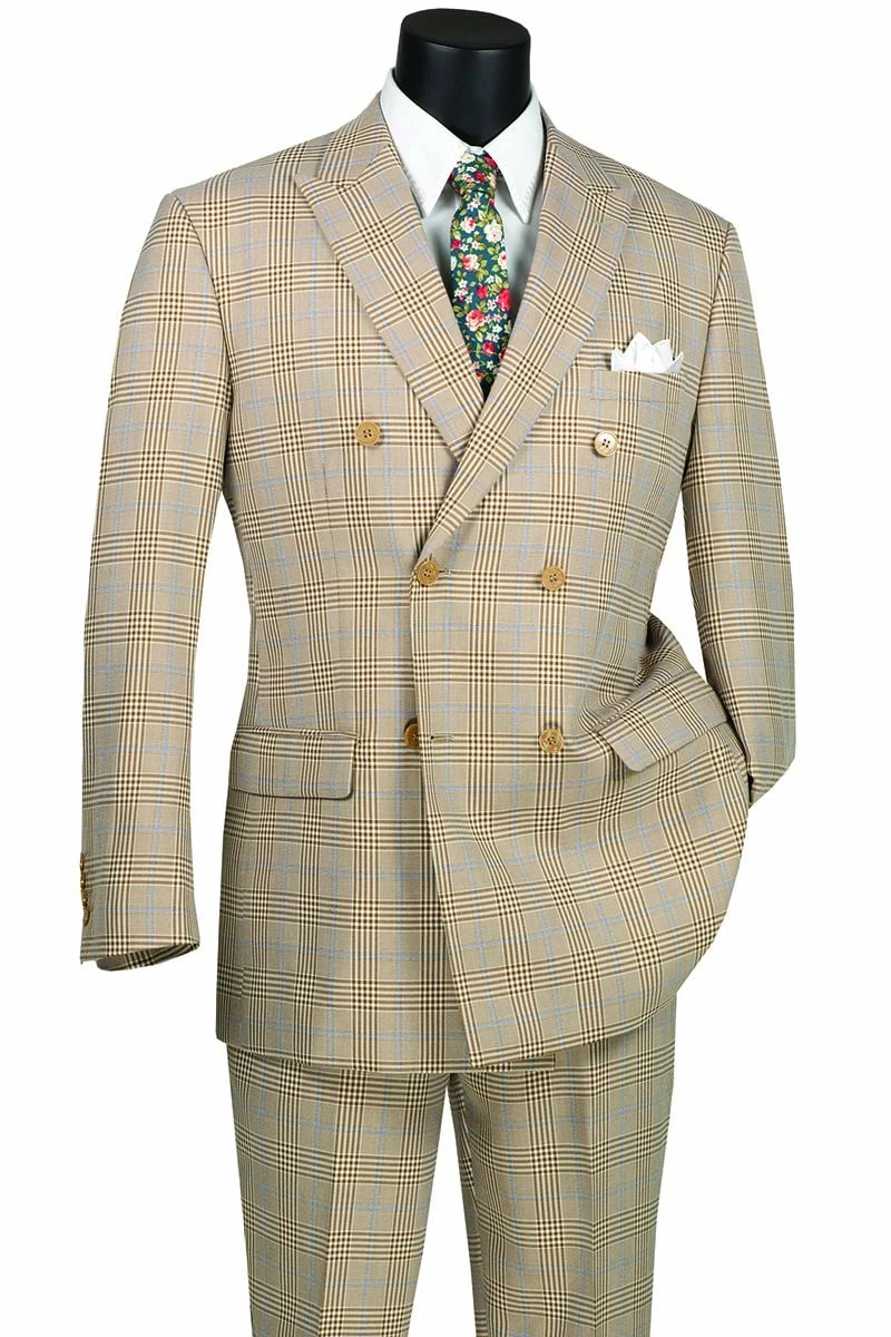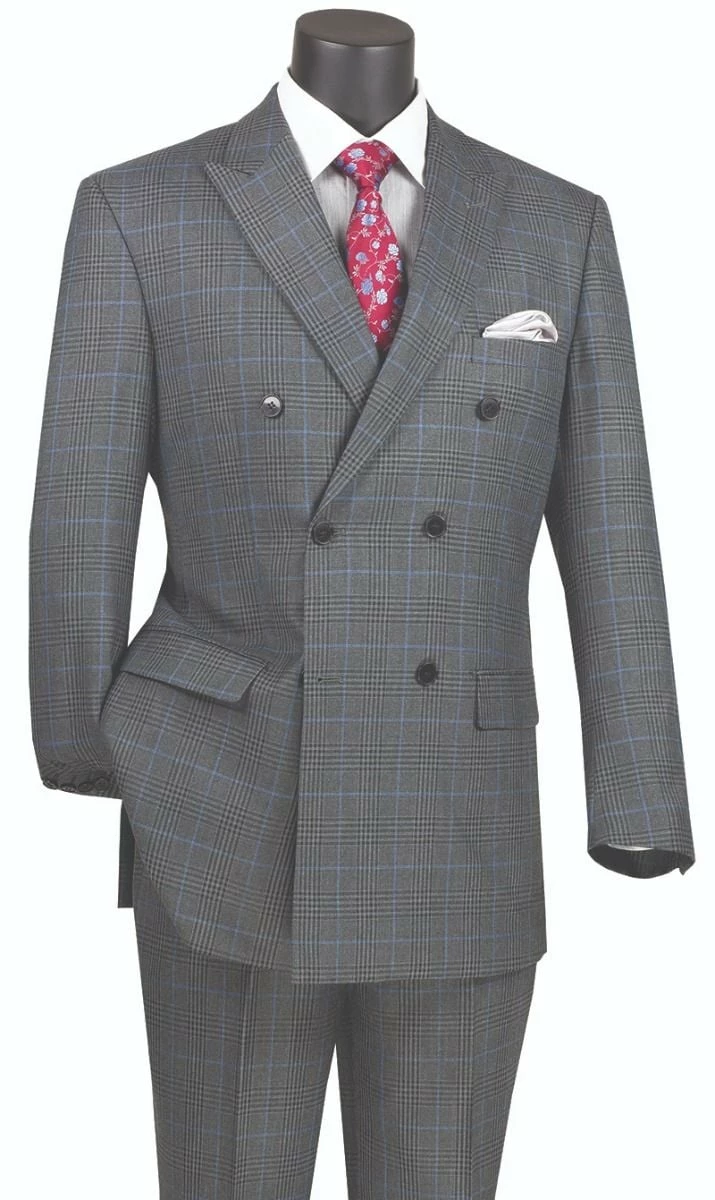 Vinci Men’s 2 Piece Double Breasted Suit – Glen Plaid.