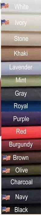 | Color | Black, Brown, Burgundy, Charcoal, Grey, Ivory, Navy, Olive, Purple, Red, Royal Blue, Stone, White |