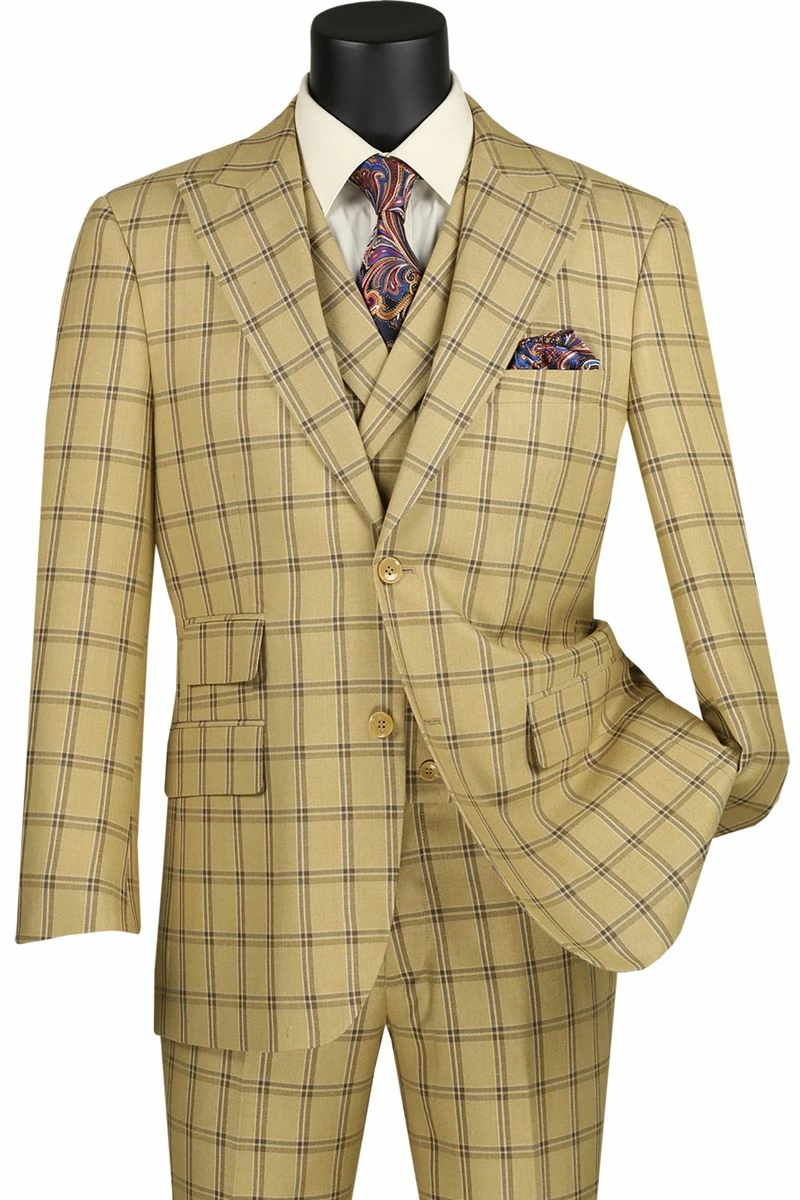 Vinci Men’s 3 Piece Modern Fit Suit – Bold Windowpane