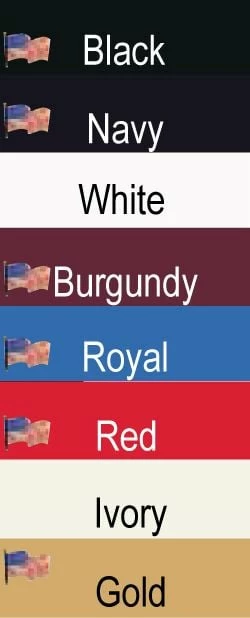 | Color | Black, Burgundy, Gold, Ivory, Navy, Red, Royal, White |