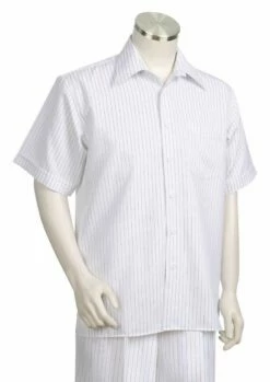 Canto Men’s 2 Piece Short Sleeve Walking Suit – Shiny Stripe