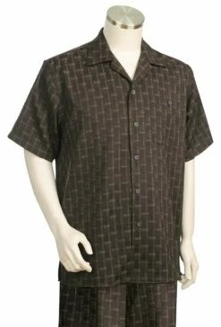 Canto Men’s 2 Piece Short Sleeve Walking Suit – Shiny Checker